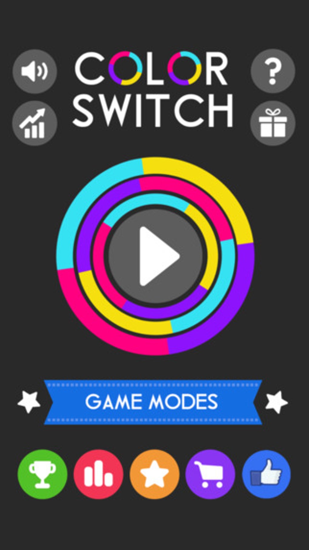 Hay una razón por la cual Color Switch ha sido descargado 80 000 000 de veces... es excelente. Puede que no lo parezca mucho, pero a menudo los juegos más inteligentes no lo hacen. Dicho esto, la calidad gráfica real es muy buena, pero no compleja. Los colores son llamativos y fuertes, haciendo realmente la mayor parte de las pantallas móviles de próxima generación. También es muy fácil de aprender, utilizando iconos y diseños que te guiarán a lo largo del juego. Este juego realmente entra en la categoría de "jugabilidad adictiva", ya que cada vez que pierdes por pasar por el color equivocado, sólo quieres tener un intento más en ese nivel. El diseño ha sido muy bien moldeado para presentar una cuerva ascendente de dificultad sin que ésta aparezca demasiado pronto. El juego añade complejidad a través de diseños, dándote círculos, cruces, triángulos y líneas para que intentes pasar la bola a través de éstos, además puedes actualizar tu bola con recolecciones que cambian la dinámica del juego. Añade a lo mencionado anteriormente una gran variedad de modos de juego y trofeos y pronto estarás adicto al juego. El nuevo modo de control es interminable y te permite entrenar tu precisión, además de que hay retos diarios que te permiten ganar monedas de estrellas en el juego.